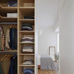 Se decide reorganizar los espacios y abrir una gran zona de día, en la que la cocina, el comedor y el salón formen una única y luminosa estancia, orientada hacia la calle Caveda. De este modo, se consigue que toda la zona de noche quede orientada hacia la fachada trasera, hacia el patio de manzana, quedando más privada y aislada del ruido del tráfico. No obstante, el aislamiento al ruido de toda la vivienda se garantiza con la sustitución de todas las carpinterías exteriores por otras de grandes prestaciones térmicas y acústicas, cumpliendo al mismo tiempo con la normativa de protección de la fachada del edificio en lo que respecta a colores y composición.