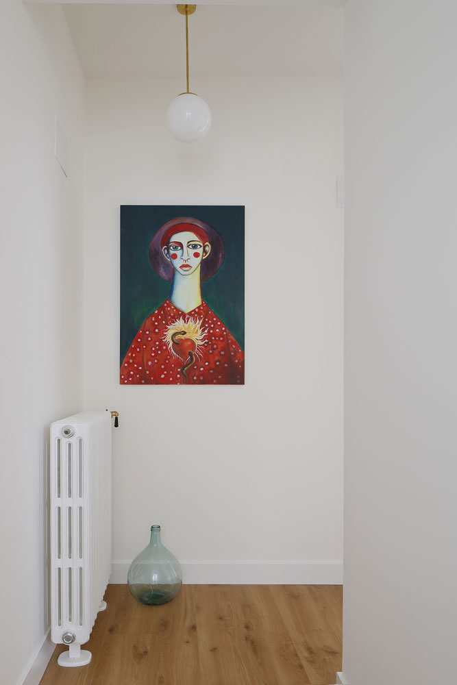 Se ha realizado una renovación integral de los acabados y de las instalaciones, reutilizándose para el pasillo y el pavimento de los baños las baldosas hidráulicas que se recuperaron de los pavimento originales de la vivienda. Así mismo, se restauraron los radiadores de hierro existentes.